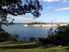 美景,无疑是最直接的感受。澳大利亚的美景在我意料当中,一下飞机新鲜的空气就扑面而来让疲劳一扫而空,呼吸忽然变得贪婪,目光在一团团一片片如棉花如羊群的云朵和晶莹剔透的蓝天以及一望无际的翠绿中久久凝视不愿离开,那一刻靓丽的色彩、通透的感受如置身童话世界一般。澳大利亚的美也在我意料之外,这里并没有多少高耸入云的摩天大厦,也没有太多专门定制的观光景点。这里有的是错落有致的民居,随意散落的公园,广阔宁静的沙滩,繁华热闹的海港,自由飞翔的鸽子、天鹅和乌鸦,以及仍在使用的歌剧院、大桥、教堂、国会大厦等。来到这里我突然明白了什么是质朴的美,没有丝毫的刻意却是那样的洞彻心灵。