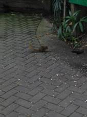 新加坡动物园中没有人为的屏障,不和别处的动物一样,是关在笼子里的,人们可以和动物更亲密的接触,这里的动物有一片更自由的天地,更舒适的环境,更像家的味道。在这里,他们住的是用小溪,湖泊等天然屏障所构成的小岛,可以随意的进出。走着走着,我们还看到一只小松鼠,从树林中跑出来捡着地上的东西吃。