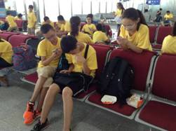 到了广场,已经有许多同学在了,于是我也站了过去,一起等待其他的同学,等到凑齐的时候,我们就要出发了,要和爸爸妈妈弟弟说再见了,临上车前,爸爸对我说:一定要好好和同学相处,玩开心点!我点点头,上了车,去了机场。到机场后,我们先吃了点零食,过了安检和海关,我们就在候飞机。