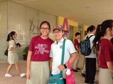 吃完早饭,我们就要启程到淡滨尼小学去了,到了小学,我认识了结对子的同学——黄颖宣。她的中国话很好,我们交流起来几乎无障碍,她会说的就用中国话说,不会的用英语我也能简单的听懂一些,我们还一起做了一份英语版的关于中国历史的试卷,还跟她一起上了一堂华语课,和她一起玩了我很开心!