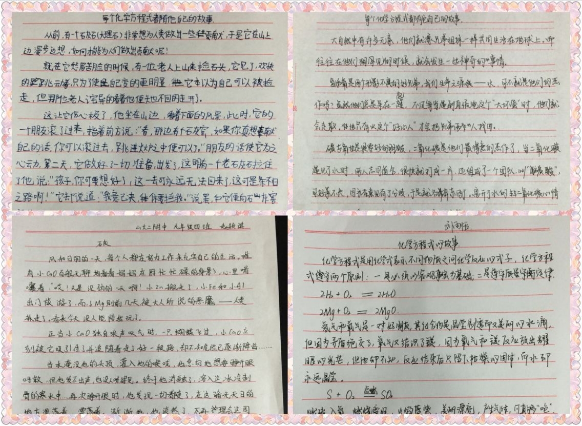 此次征文活动,让我们看到在同学们的笔下,化学方程式活了起来,不仅有血有肉,还有情感。同学们在征文中表现出的创造力真的让人惊叹!