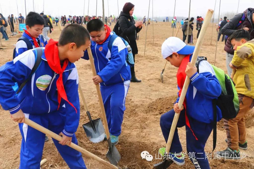 三年级一班、四年级一班、五年级一班的同学们则一起来到章丘陈家窑,在黄河母亲的岸边中下一片片小树林,风吹乱头发,泥土弄脏衣服,但是也挡不住我们劳动的欢乐。若干年后,这里将成为一片片茂密的小树林,黄河母亲将会变得更漂亮。